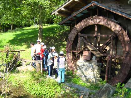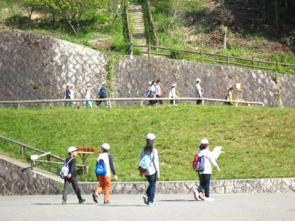 昼食の後は,敷地内の自由散策です。館内のいろいろなところを散策したり,本館から外に出て敷地内の散策をしたり,グループで行動しました。中には,早く散策し終わってグループでわずかな時間ですが,くつろいでいるグループもありました。
