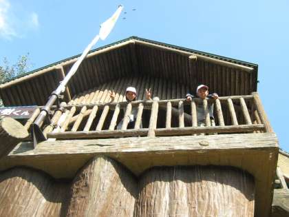 山の家にとても壮大なフィールドアスレチックがあります。名前,冒険の森「アドベンチャーワールド」ですが,いろいろな丸太での遊びやつり橋渡り等が出来ました。