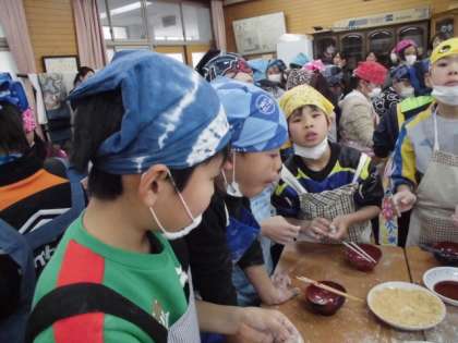 子どもたちは丸めては食べ,丸めては食べ・・・と,