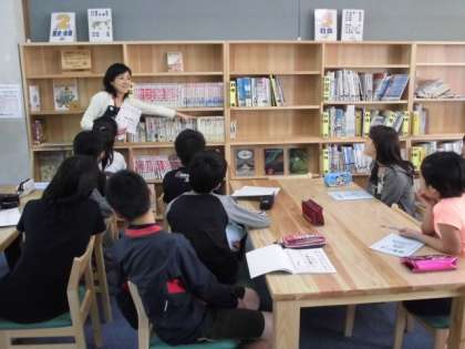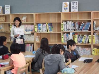 図書支援員の新納先生による図書室の使い方,及び分類番号等の