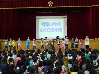 5月1日は「人権朝会」がありました。校長先生のお話を聞いた後で,子どもたちがそろってむくのき学級紹介をしました。むくのきのテーマソングを歌い,一人一人が頑張りたいことを大きな声で発表しました。全校の友だちもむくのきの子どもたちの発表に,温かい拍手をおくってくれました。「なかよくしましょう!」