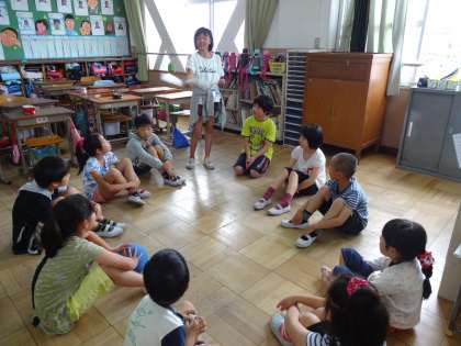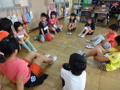 19日(火),今年度初めてのたてわりグループのなかよしグループ遊びがありました。4年生のみんなもグループの人の名前を覚えるゲームを楽しんでいました。