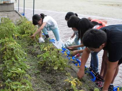 6年生の花壇では,ジャガイモを育てています。