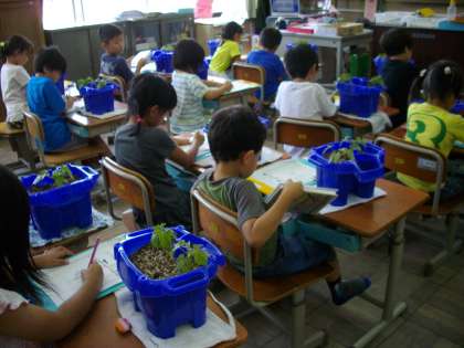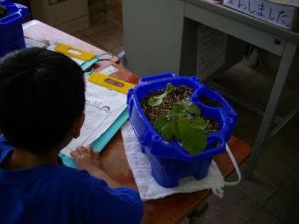 双葉の観察をしてから,数日後には,本葉が出てきました。子どもたちは