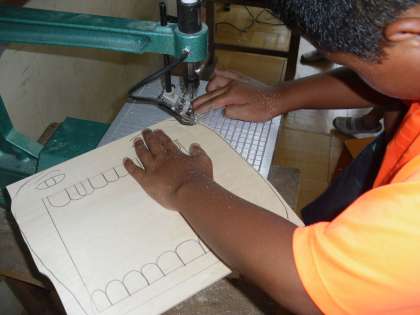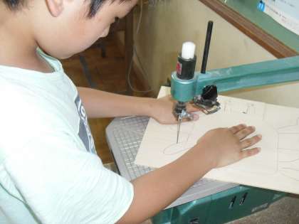 図工科の学習で電動糸鋸に挑戦しています。