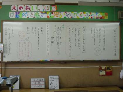 子どもたちは、日常的に,「おはよう」「さようなら」「いただきます」など,挨拶をしっかりと行っています。その中でも,「ありがとう」という言葉にはどんな意味があるのか,昔からの日本の人々の心がこめられた言葉にはどんなよさがあるのかについて自分なりに考えを深めました。