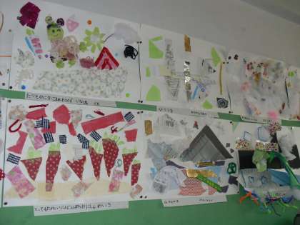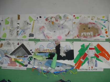 すてきな作品が出来上がりました。どの子も,身近なものを上手に使い,面白い作品を作りました。個人懇談会の時にぜひ,ご覧ください。