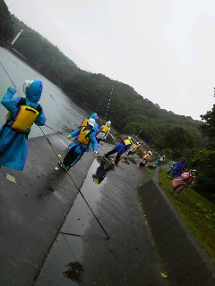 午後はあいにくの雨。釣りはカッパをきて挑戦。裏山ラリーは中止でストーンペイントに切り替えました。