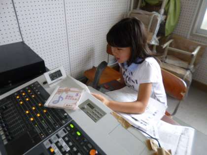その日の給食の献立紹介に始まり,ニュースやクイズ,音楽の紹介をするアナウンサー。