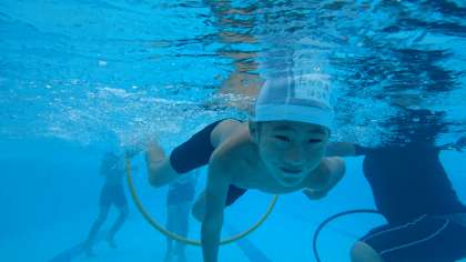 夏本番を思わせる太陽の輝き,入道雲!暑い中,最後の水泳学習をむくのき学級で行いました。初めは水が怖くて顔をつけるのも必死だった子も,水の中で笑っています。水と戯れる子どもたちの様子を見てください。着衣泳では,浮くことさえままならなかった子どもたち。夏休み,海や湖や川に子どもだけで入ったら大変なことになる,安全に気を付けなければということも身を持って体験できました。