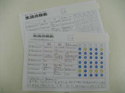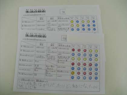 先週は、生活点検週間でした。1年生は、お家の方といっしょに、2年生以上は自分たちで生活点検を行いました。一人ひとり1週間の振り返りをしっかりしていました。学校生活を元気に送れるよう、「早寝・早起き・朝ごはん・朝うんこ」の生活を心がけましょう。