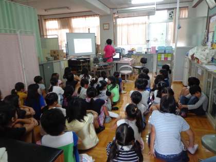 今日は,女子は保健室でお話を聞き,男子は体育館で歌と体操の練習をしました。