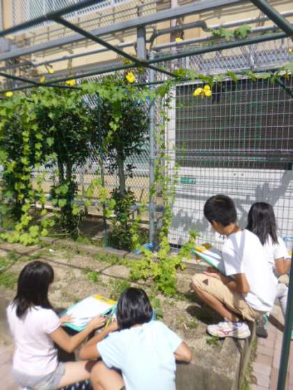 ツルレイシはもう実が落ちて見られなくなっていましたが,「種が見えている」とか「サクラの葉が虫に食べられたり,周りが茶色くなってきている」などの発見がありました。