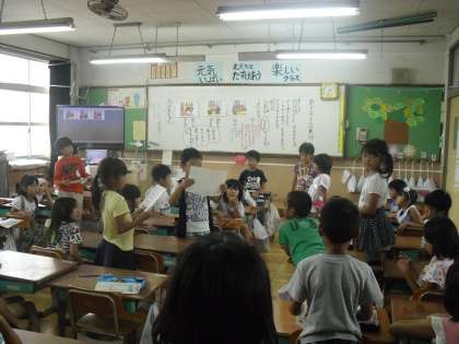 昔の人の知恵にふれ,あき子さんは感動します。子どもたちは,「来年の夏にはうち水をしてみたい。」「おばあちゃんは工夫しているな。」などさまざまな思いを発表しました。