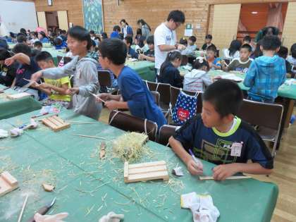 クラフト「竹ばし作り」は、どうなるかと心配しましたが、無事に完成しました。多少、先の太さが少し太いかなと思うようなものもありましたが、小型ナイフを使いこなし「はし」らしく出来上がりました。怪我もなく完成です。