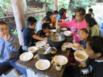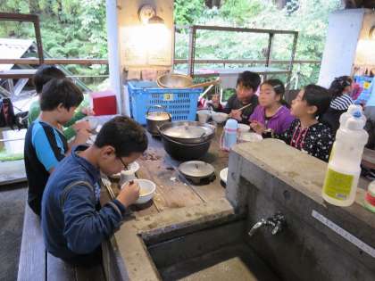 「豚汁」の味の方は、ほとんどのグループおいしかったという感想でした。明日の「カレーライス作り」もおいしく作れたら良いですね。がんばれー!