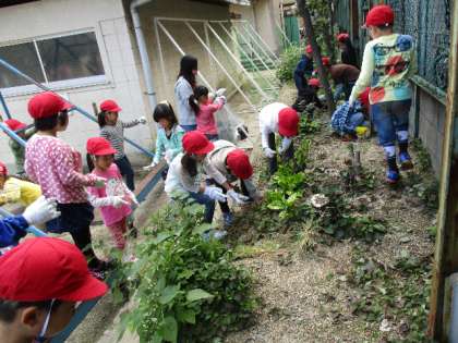 たり,植込みの中の草を抜いたりして,しっかり活動するこ