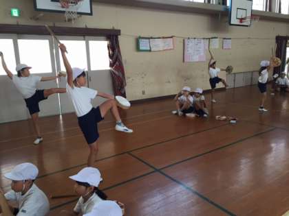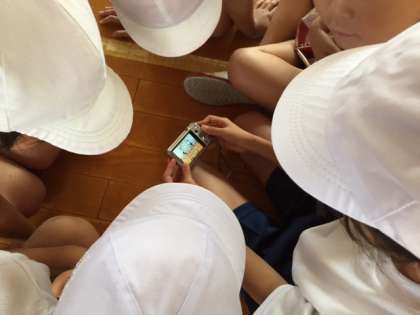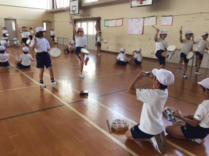 基礎の練習を繰り返し,少しずつさまになってきた4年生の子ども達。この日は,自分の踊りをデジタルカメラの動画機能で撮影し,すぐに再生して確認,そしてまた踊るという活動を行いました。