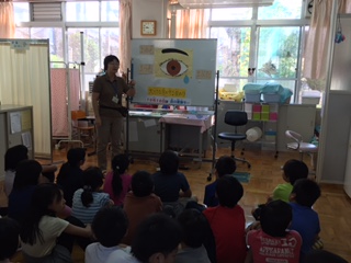 10月10日が目の日ということで,目を守る体のしくみについて,養護教諭より話してもらいました。