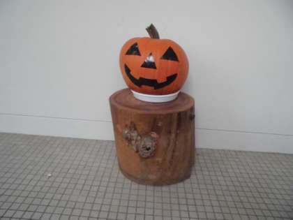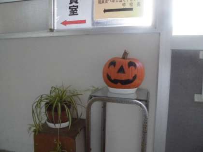 職員室前のろうかに現れたおばけかぼちゃ。