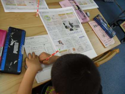 国語科「どうぶつ園のじゅうい」で獣医さんの1日を学習しました。獣医さんの仕事についても知ることができました。学習を生かして,毎日新聞発行「こども新聞」の記事を使い,興味のある職業を調べました。女優・建築士・ペットトリマーなど約20種ほどあります。ブドウ農家が人気の職業でした。少し,意外でした。