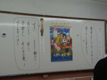 今回は「ポスター」を使って,”公徳心”について考える授業でした。
