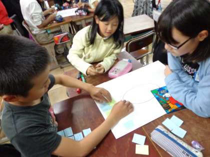 また,子どもたちが考えを深める場面では,”アクティブラーニング”の手法を使いました。今回は「ブレーンストーミング」を用い,意見を関連付けたり,まとめたりしていきました。学習に能動的に取り組むといった点で,そのあとの協議会でもたくさん意見が出ていました。