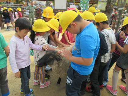 「ふわふわしてる〜。」「気もちいいなあ。」と言いながらやさしく動物に触れていました。