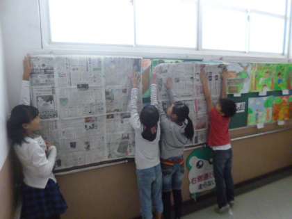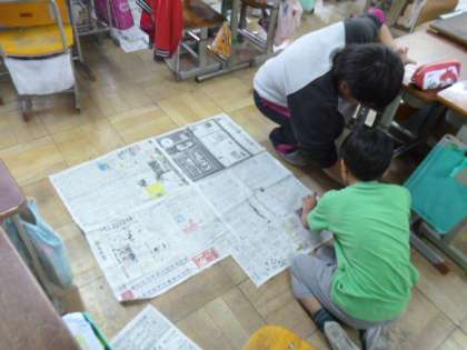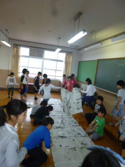 新聞紙で1平方メートルを作って,いろいろな広さを調べてみました。