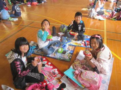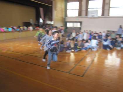 京都府警察本部の見学の後,生き方探究館まで歩いていき,体育館でお昼ご飯を食べました。食べ終わったら,みんなで鬼ごっこやみさきの家でやった「みんなクワガタ」で盛り上がりました。