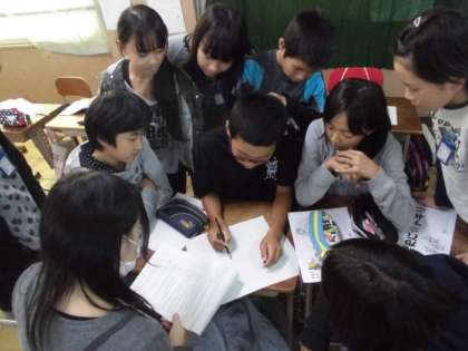 今日も動きを付けるグループ,声の加減で表現するグループと様々な表現方法を考えていました。わいわいと意欲をもって活動する姿を嬉しく思ってみていました。