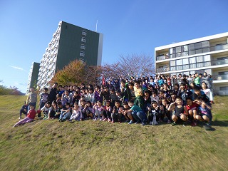 学校で観察しているサクラやヘチマを見た後,学年全員で桂川の河川敷に向かいました。
