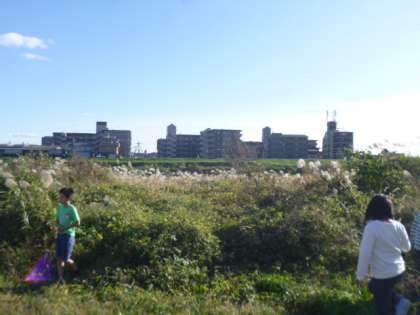 ススキの穂が目立ち,植物もよく見ると前には見られなかったイヌタデの花やオナモミの実に大喜び。いっぱい採って,友達に投げつけて遊んでいました。