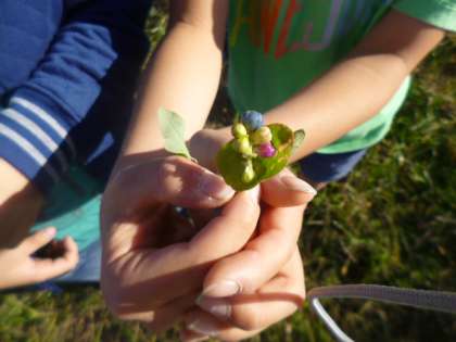 中には,宝石のような青や紫色の実が散りばめられた野草を見つけてくる子もいました(後で調べたところ,イシミカワということがわかりました)。