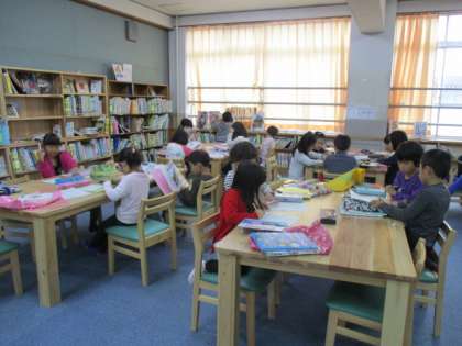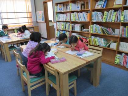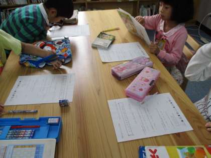 図書館にある本から,出題しているので,グループで相談したり,教え合ったりしてクイズを解いていました。たくさん正解できるといいですね。