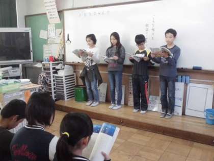 国語では,「自分の感じたことを朗読で発表しよう」をめあてとした学習を進めています。