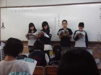各グループで感じたことをまとめながら,一つの音読に表しました。
