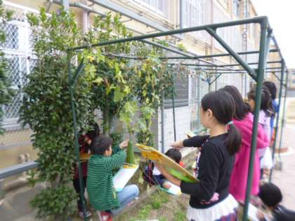 桂川の秋の様子を観察した後に,学校でもサクラとヘチマの様子をスケッチしました。