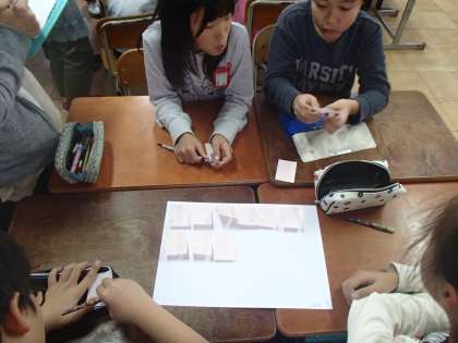 付箋を用いてグループで話し合う形も,子どもたちは新鮮そうでした。