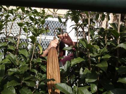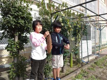 あまりたくさん実らなかったので,この日の誕生日の2人に収穫してもらいました。