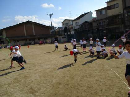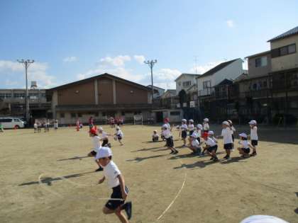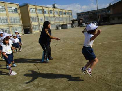 大なわにも挑戦しています。失敗してもだんだんとべるようになっています。やってみようとする気持ちが大事ですね。