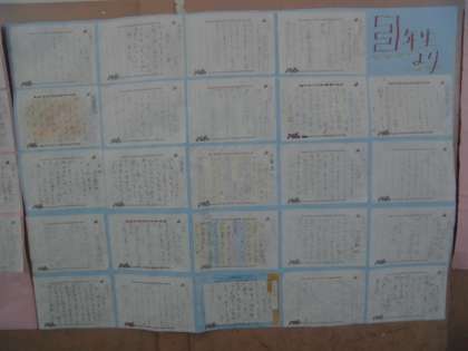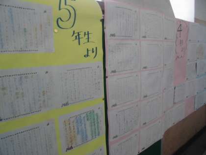 今年からそれぞれの学年が感想を書きあう取り組みを始めました。