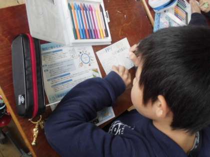 今日は裏面,あいさつ文を考えて,丁寧にかきました。