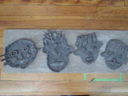 3年生は自分の顔を作りました。その子らしい顔ができあがりました。4・5・6年生はろくろを使って粘土を積み上げ、カップを作りました。むずかしくて,倍ぐらい時間がかかりましたが,持ち手をつけたり,飾りをつけたりしてたくさん工夫をしました。作品は「ふれあいの里授産園」で焼いてもらいます。焼きあがるのが楽しみです。