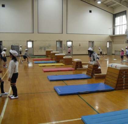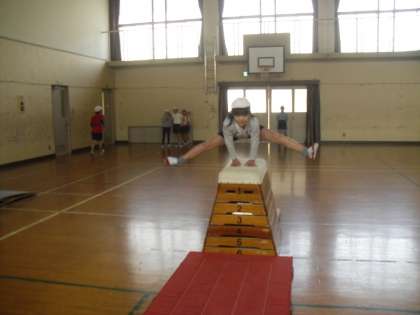 はじめの時間では,安全面についての指導を行いました。そして,高さや踏切板の距離の違うとび箱に挑戦することをねらいに,今できる技を練習しています。