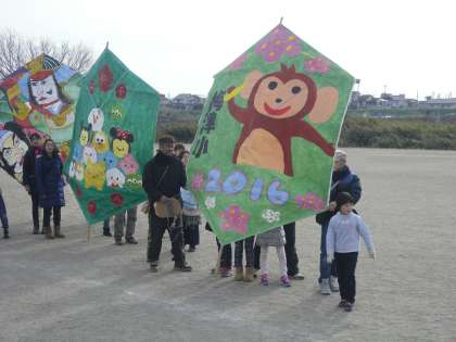お陰様で今年も梅津小学校児童会とPTAの凧は,天高く上がることができました。