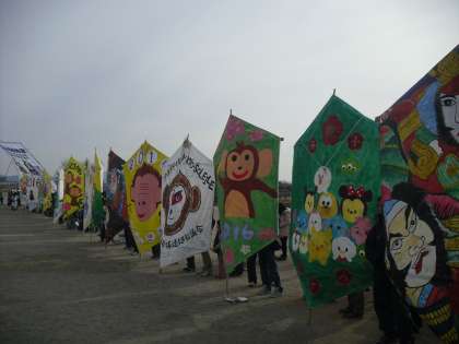 梅津地域の諸団体が心こめて作った大凧は,どれも皆力作ぞろいです。