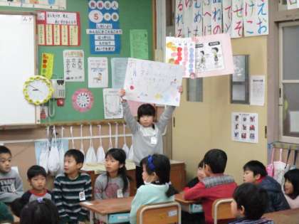 2年生から,招待状が届きました。2年生が生活科で「あそんで,ためして,くふうして」の学習をしています。身の回りの材料を使って,手作りおもちゃを作っています。そのおもちゃで,1年生が遊べるようにと,招待してもらいました。