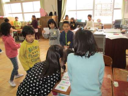 本番の「おみせやさんごっこ」では,店番とお店を回る人を決めて,交代しながら楽しく活動することができました。グループで分担したり協力したりする姿が見られました。