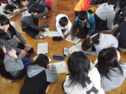 クラスを解体したグルーピングで交流することで,普段あまり話をしない人とも互いの考えを伝え合う機会を作っています。
